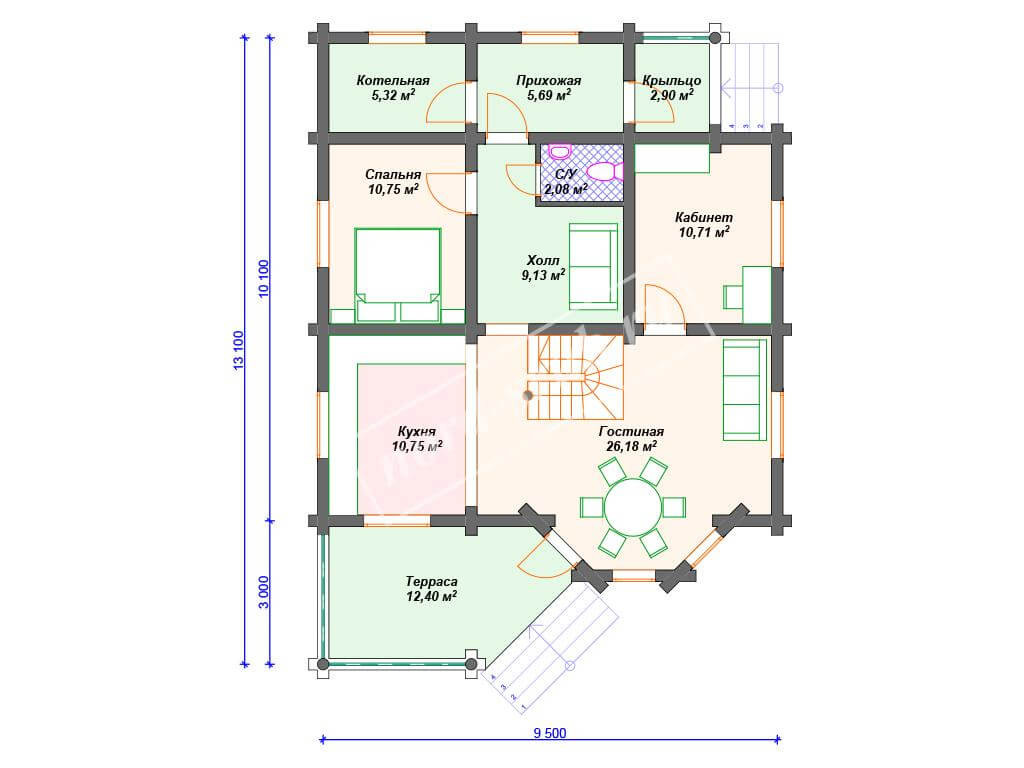 - Жилая площадь: 101 м2