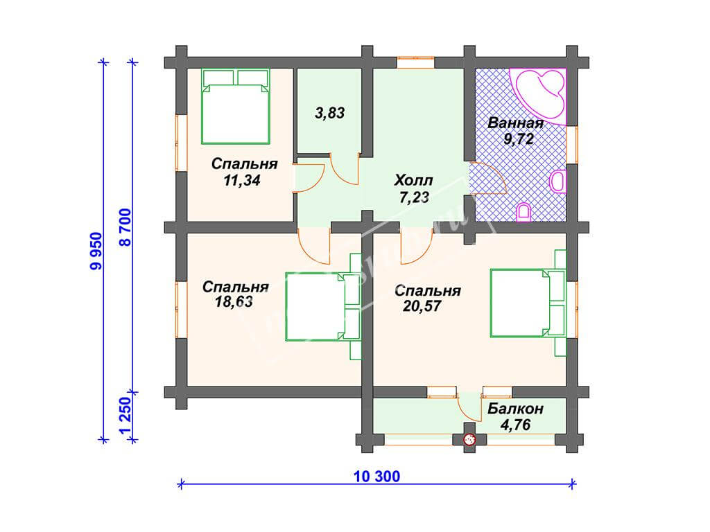 Размер 10x9 м