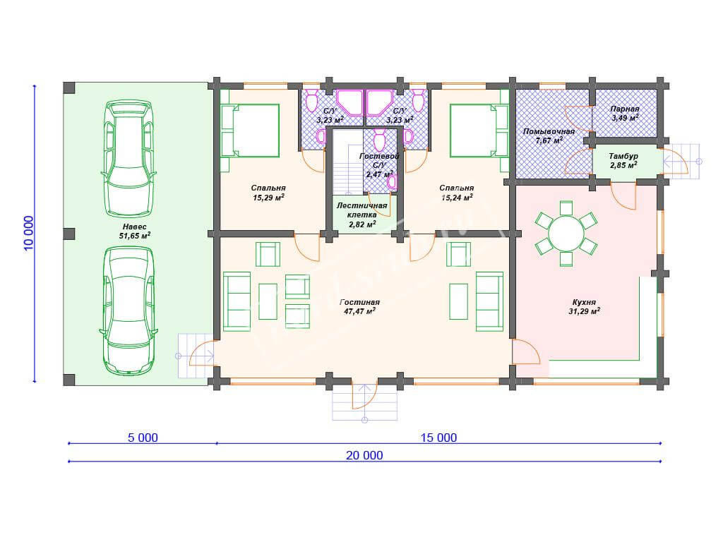Размер 10x20 м